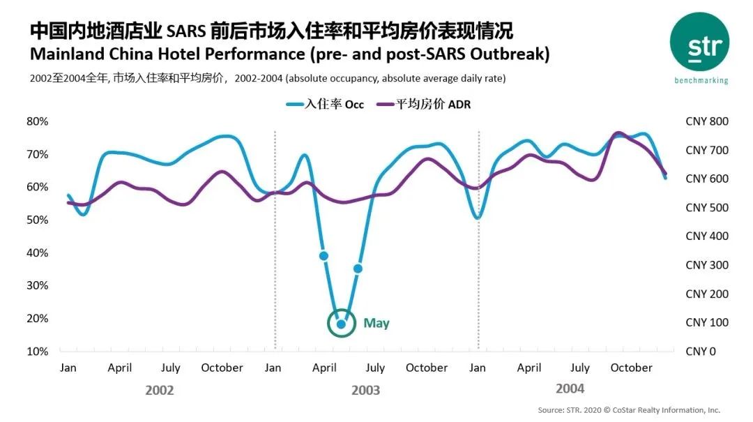中国内地酒店的表现在2003年5月落到低谷,整体市场只有18%的入住率。与此同时,平均房价保持在了551人民币的位置,与去年同期相比,有8%的下跌。在解除限制后,入住率在8月就已经回弹到67%,从平均房价上来看,中国大陆酒店只经历了3个月的下跌 — 2003年4月,5月和6月。 飞猪旅行网酒店事业部副总经理房晨认为,“到3月31日,基本上疫情就会逐步缓解。而最关键的4月初到5月底,则是大家的生意爬坡期。”在此期间,市场的需求被逐步释放,酒店出租率也会逐步抬头。而在6月1日之后,经济发展回到正轨,暑期的报复性消费必将到来,“从行业角度看,这个发展会比往年的同时段更大、更迅速。” 执惠创始人兼CEO刘照慧的判断则更为明确:“虽然因为疫情,对2020年的中国旅游业总体收入会造成30%左右的影响,但是低线城市的人群对于旅游品质的需求会继续升温,同时本土的旅游、酒店品牌也一定会快速崛起。”他认为今年的住宿调整趋势会被进一步加剧,加速翻牌单体酒店,“单体酒店的利润空间会进一步被挤压,国内酒店连锁化率的提升空间会非常巨大。” 作为一名经历过2003年SARS的老酒店人,晗月集团副总裁夏子帆认为,触底反弹是必然的,在所有的实体行业复苏节奏中,酒店业将率先恢复,这是消费需求所决定的。
