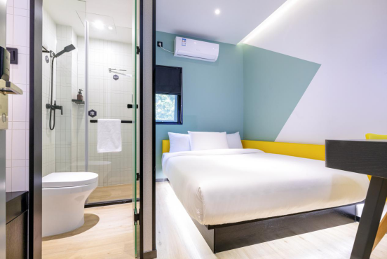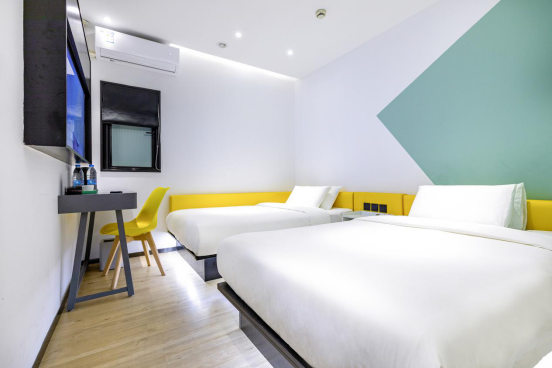 易佰酒店,时尚微精品酒店,设计风格轻奢时尚,以设计集成化的工法实现小而精、微而美的空间呈现与全功能配套。房间面积12—15平米,重视坪效,为有一定差旅预算的客户提供有品质高性价比的住宿产品。