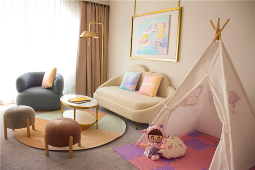 同时,宝龙艺术酒店还推出风格多样的艺术主题房和亲子主题房,房内一物一景一画都根据不同主题细心布置,充满了艺术思考与趣味创意。杭州滨江艺珺酒店的印象梵高主题套房、上海吴泾艺悦酒店的蒙德里安主题房等独特的艺术主题房,让孩子睡在“名画里”。杭州滨江艺珺酒店的粉嫩KIMMY&MIKI主题亲子房、山东蓬莱宝龙艺珺酒店的小黄鸭亲子套房、杭州富阳艺悦酒店星空主题亲子房等,打造了一个个小小的游玩世界,让孩子们足不出屋置身于舒适有趣的主题童话世界。