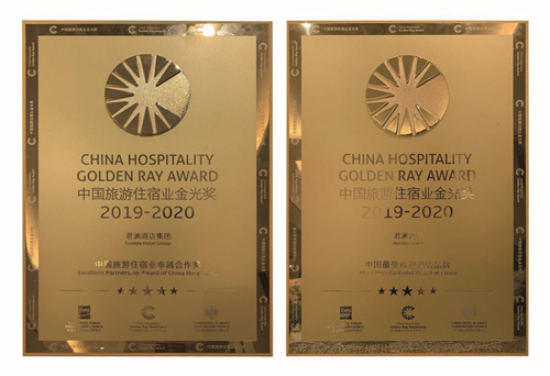 8月22日,君澜酒店集团在第六届中国旅游住宿业论坛、2020中国酒店业联盟大会、2019-2020中国旅游住宿业金光奖颁奖典礼上再度荣获“中国最受欢迎酒店品牌”奖及“中国旅游住宿业卓越合作奖”两项大奖。