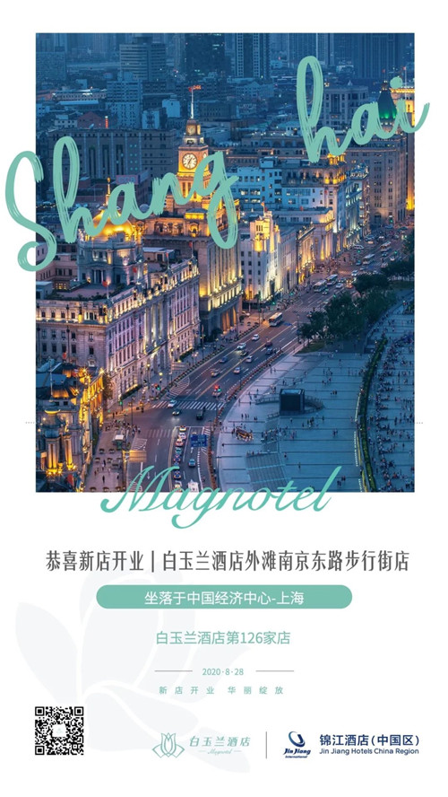 2020年8月28日,白玉兰酒店上海双地标项目——「白玉兰酒店上海外滩南京东路步行街店」和「白玉兰酒店上海新国际博览中心店」盛大开业。