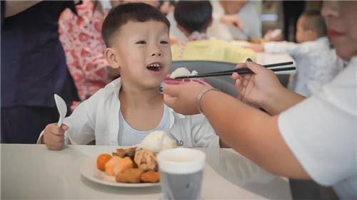 活动当天,白玉兰酒店长春会展中心店的自助餐厅成了儿童的天堂:好吃的鸡块、鸡米花、红烧肉、水果、零食……这些对我们来讲再平常不过的食物,对很多有自闭症儿童的家庭来说,是几月难得一次的奢侈。