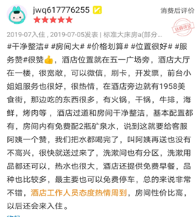 还有一次我需要换房间,客房部的保洁姐姐叫我自己去另外的房间,所有的行李都是她帮我收拾,整理,搬到另外的房间,因为需要敷药,每天房间都会很乱,她都会帮我收拾的很整洁,偶尔中药流到被子上,都会及时帮我换掉。每天都会帮我多放两瓶水,因为吃药比较费水。