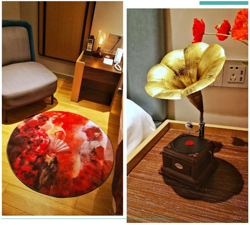 走进「时光留声机主题房」,主题房设计理念以老上海民国时期为背景,主打记忆片段的怀旧,以一台老式经典的留声机为引子,咿咿呀呀的吴侬软语从旋转的黑胶中缓缓唱出,眼前徐徐展开娉娉袅袅的民国少女们,精致贴身的旗袍勾勒出他们婀娜的身段,三五成群,尽态极妍,一颦一笑,春风拂面,营造出一番铃铃笑声的生动画面,仿佛人在旧时光中,走进了岁月里。