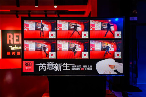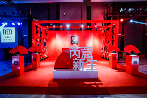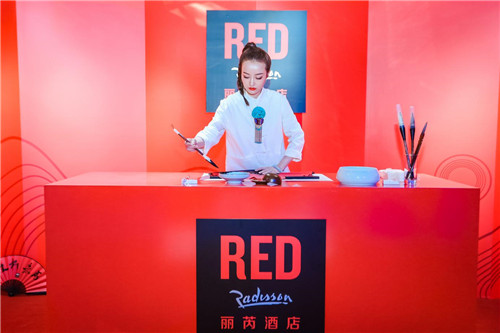 主会场右侧的艺术互动空间由近百把鲜明浓郁的红色锦扇构成,奇妙有趣的复合新空间颠覆传统定义,彰显摩登潮酷新风尚,也是对于丽芮酒店品牌将本土化与品牌基因结合的诠释。其间,先锋艺术家鞠佳人身着新中式服饰,以【芮意新生】为主题在扇面上进行手书创作,并赠与现场宾客。另一侧,在律动的灯光下,宾客们在丽芮品牌标语墙前尽情发挥创意与情感,踊跃体验全景拍摄技术,呈现了一场科技风与时尚感交织的沉浸式体验。这两大互动区与丽芮酒店的大胆无畏、风趣诙谐、新颖独创等核心理念交相呼应,旨在有限的空间创造出无限可能。