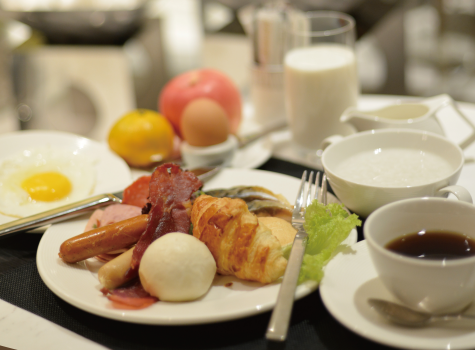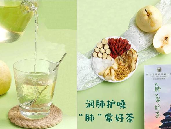 五谷杂粮饮料、肺常好茶和不少于50个品种的自助早餐