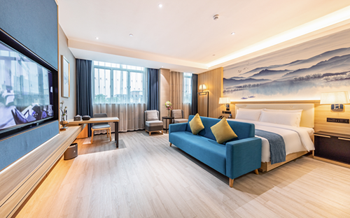 而后,家具装配化开始进入酒店行业中,标准化和模块化的设计背后,是技术的革新,也是从定制化向标准化生产的转变。晗月集团率先成立自己的家具工厂,引进BIM设计拆分技术及装配式生产管理体系,统一供应的家具包括客房衣柜、洗手台、睡眠区、办公区、休闲区中的床、书桌、椅子、沙发、茶几、吧台,以及电视柜、投影幕布等娱乐设置和卫浴五金、玻璃及木饰面等装饰。这些家具不但生产周期短(40天以内),更能够将客房筹建周期缩短至4个月,这就是晗月生态的优势。