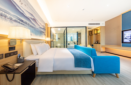 在晗月生态迭代升级下的H酒店深圳宝安机场店,单房造价低于10万,远远低于同类型中端酒店的平均造价,从签约到试营业,仅仅花费4个月时间,全程由晗月内部孵化而出的产业人员为主导进行建造。作为晗月生态闭环中的EPC(设计/采购/装饰)服务体系,H酒店为投资商提供“一站式”加盟服务,为投资客户压缩中间环节利润、降低成本、缩短工期,以最少的投资成本撬动更高的投资回报,打造最具投资优势的智慧中端酒店。