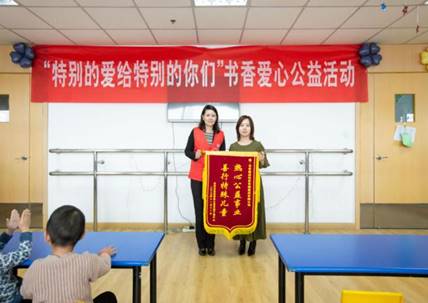 书香酒店集团党委副书记、工会主席钱恩妮女士代表书香酒店集团上台宣读了爱心倡议书,呼吁更多的社会各界共同关爱这一特殊群体。苏州市佳悦特殊儿童早期干预中心企划部主管张仙女士上台致辞感谢,并向书香酒店集团赠送了锦旗。