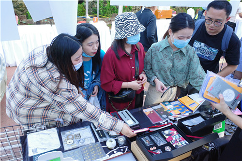ZMAX旗下社交电商宇宙不正经Z货铺作为受邀参展方,参加了本届文创周“集市行乐”海街文创节,并展出一系列文创产品,其中不乏文具、T恤及背包等品类,受到广大青年的青睐,纷纷驻足拍照留念、询价购买。有购买了文创产品的顾客在受访时表示:“文创产品都很有特色,是会场内比较亮眼的展位。”