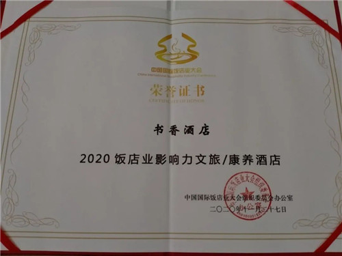 ▲“2020饭店业影响力文旅/康养酒店”荣誉称号