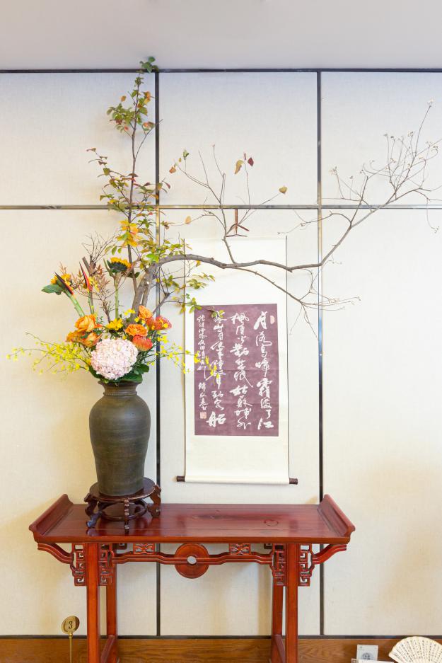 说到树山书香世家酒店的花道培训课,这个课堂不仅仅局限于自己酒店的员工培训,也承接外部的花艺交流活动,通过自我的发掘探索,与外部花艺大家的交流,周总与团队慢慢将树山书香世家酒店变成一片花香之圃,孕育“五香四美”的花苗。