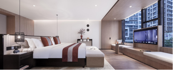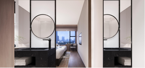穿过过道,漏空花格点明客房入口,开启房门即心仪已久的旅行驿站。360度视野落地窗、菱花铜镜装饰、舒适干净床品配套,让每一位旅客,在繁忙都市都能感受安静典雅的慢生活!