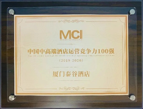 2020年12月10日,中国MCI酒店营运盛典在广州隆重举行,厦门泰谷酒店荣获本次评选的“中国中高端酒店营运竞争力100强”。