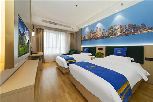 酒店拥有客房176间,依照商旅人士喜欢的蓝金色系精心设计,拥有各类标准间、大床房、数码房等多款房型,酒店设施设备齐全,提供会议、宴会、卡拉OK、娱乐等服务。先进的智能设施与高速WIFI完美搭配,确保商旅客人在酒店每一处都能满足办公需求。高品质床上用品,伴您安然入睡。