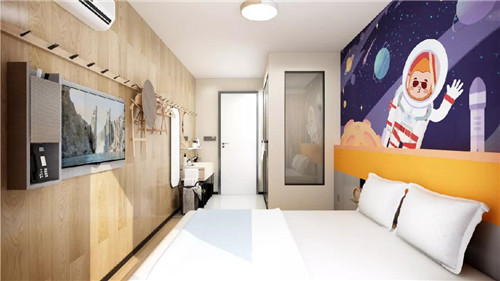 新版本的布丁继续大胆活泼的用色,同时精巧构思的撞色设计,活泼可爱的动漫设计, 增强了视觉冲击和空间感,也更大程度上增添了酒店的趣味性,让酒店不再是一个生活的中转站,而是一个可交互、可欣赏的第三空间。让每一位入住布丁酒店客人,都能有一次愉快的住宿体验。