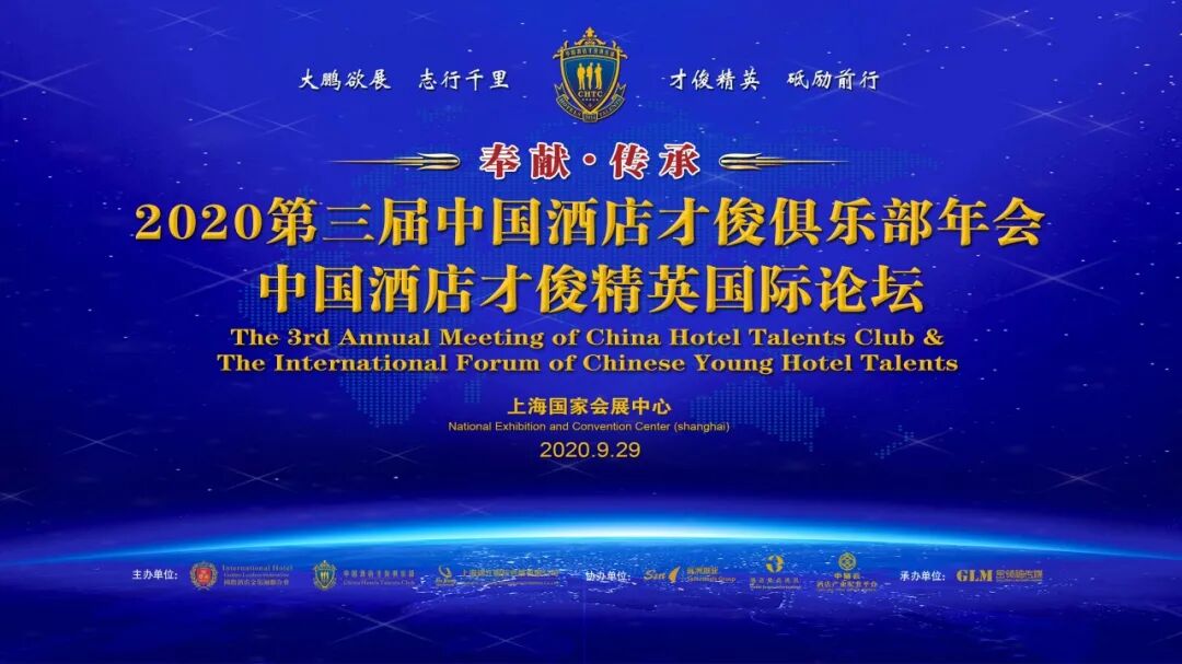 2020年9月29日,由【上海锦江国际会展有限公司】、【国际酒店金领袖联合会】及【中国酒店才俊俱乐部】联合主办的“第三届中国酒店才俊俱乐部年会暨中国酒店才俊精英TOP100国际论坛、中国酒店才俊‘精英奖’颁奖盛典”,以“奉献·传承”为主题的年度最高规格、最具影响力、最具历史纪念意义的活动在上海国家会展中心、上海阿纳迪酒店圆满落幕。