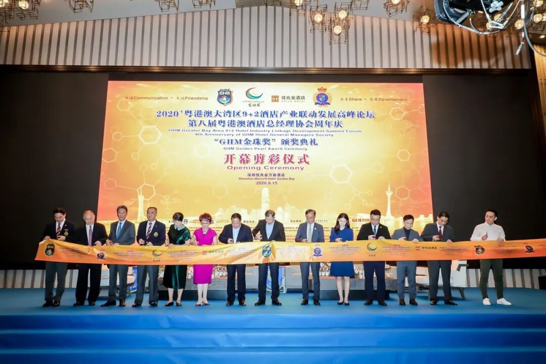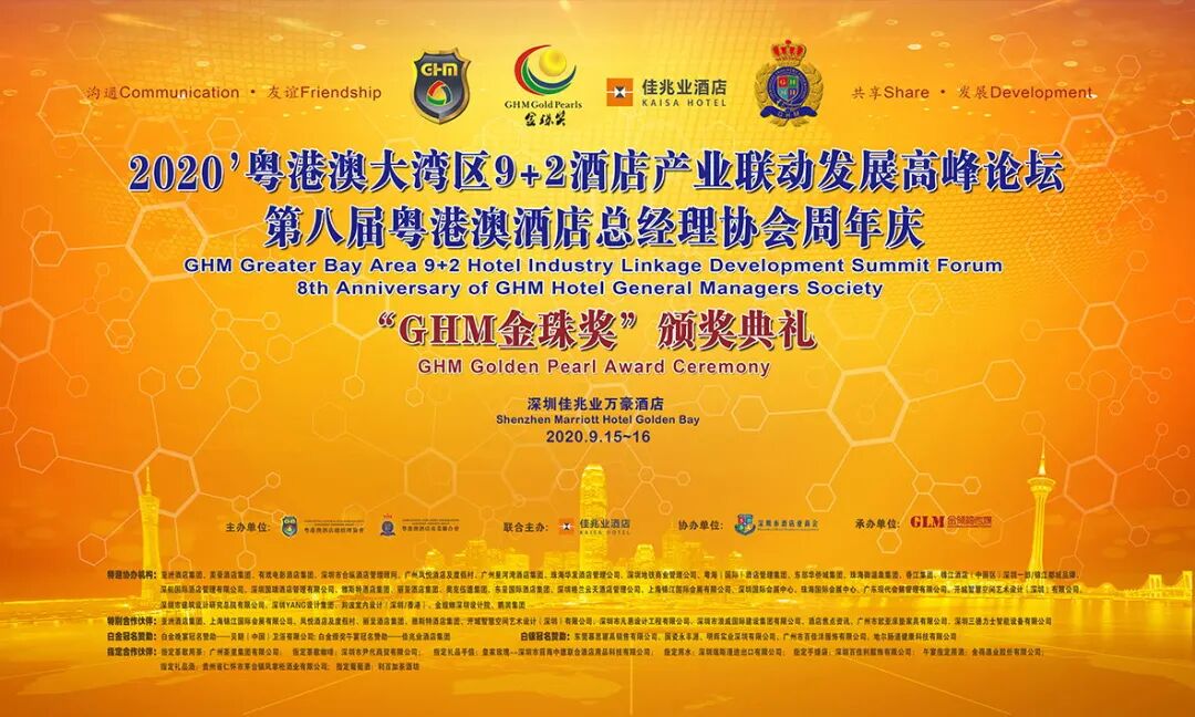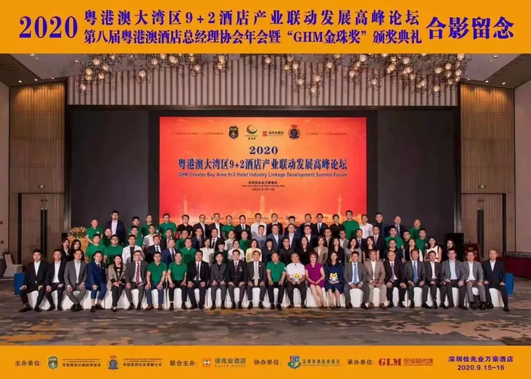 在粤港澳酒店总经理协会八周年之际,为了促进粤港澳大湾区酒店产业的快速复苏和联动发展与合作,加深理解“粤港澳大湾区9+2”新形势下酒店业当前发展中的机遇与挑战,同时也为粤港澳酒店业同仁提供品牌展示平台,由【粤港澳酒店总经理协会】、【粤港澳酒店产业联合会】主办,【佳兆业酒店集团】联合主办,深圳市酒店业商会协办的“2020”粤港澳大湾区9+2酒店产业联动发展高峰论坛/第八届粤港澳酒店总经理协会周年庆暨粤港澳酒店“GHM金珠奖”颁奖盛典”,于2020年9月15-16日深圳佳兆业万豪酒店隆重开幕,圆满落幕。