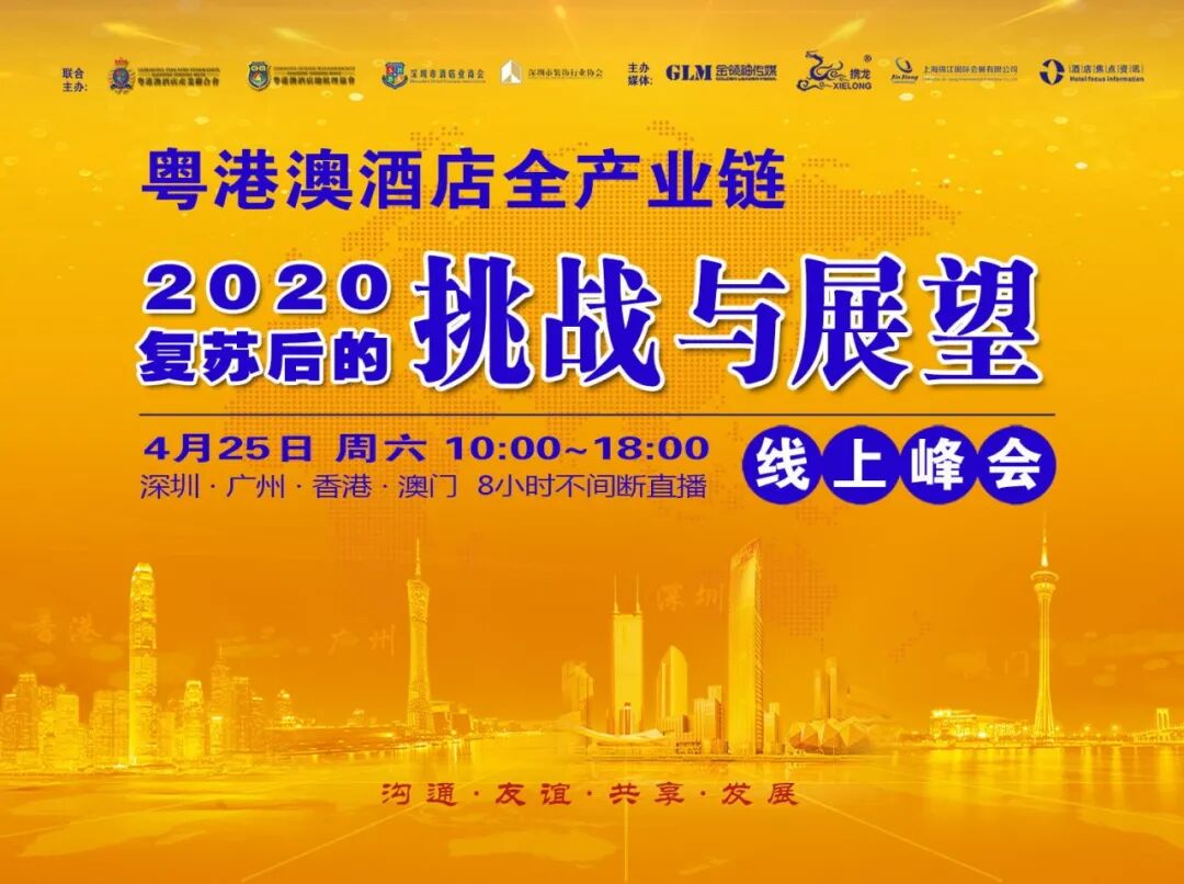 2020年4月25日,《粤港澳酒店全产业链——复苏后的挑战与展望》线上峰会通过四地直播间方式同步举行。近三十余位嘉宾汇聚香港、澳门、广州、深圳四地,畅谈行业现状,期许未来发展,为行业出谋划策、赋能加持。