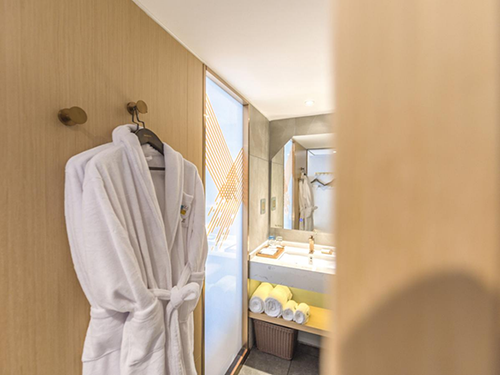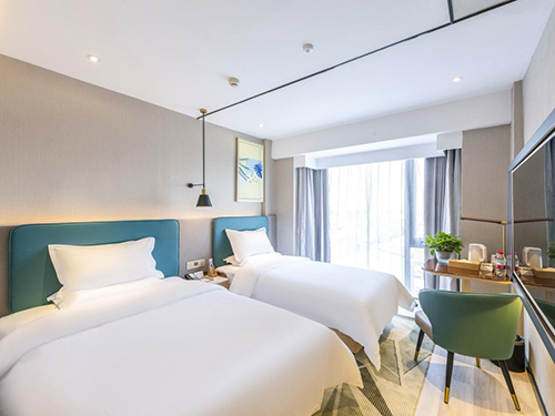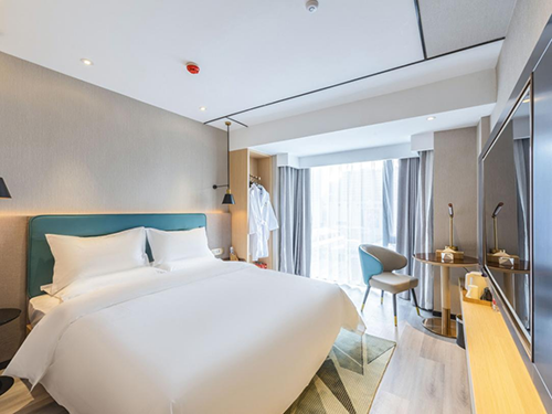 酒店客房均采用高品质智控门锁,可通过手机或密码一键开锁,无需担心忘带或弄丢房卡。房间内配备高品质床上用品和低碳洗护用品,让每一位客人都能安心入住舒适入睡。