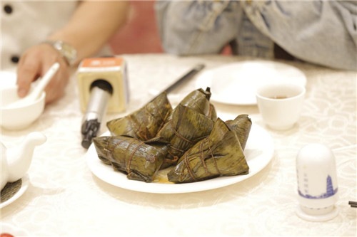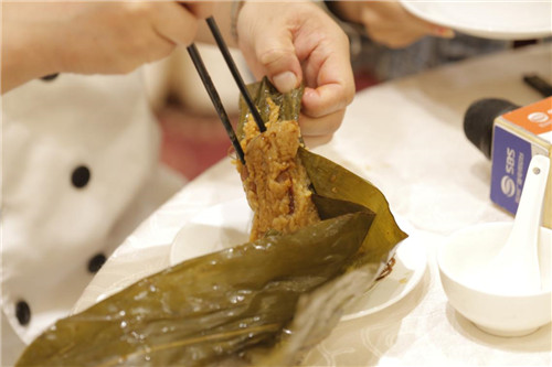 被戏称为奥灶系列“二胎”的奥灶大肉粽,绝妙就绝妙在这颗粽子中的糯米要先浸泡在奥灶浓汤里,包好的大肉粽,也是用奥灶汤煮成的。尽管描述起来很简单,但是要将奥灶面汤运用在棕子里,并不是简简单单的按照面汤来配料来。在观察了糯米与面条对汤汁吸收过程,分析了同一段时间吸收程度的不同,厨师团队不断调整配比,终于历经8个月配出了适合糯米吸收的汤汁方子。