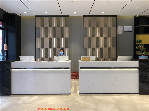 宜尚品牌(梧州苍海湖店)新店落成于梧州,酒店大堂采用现代化的装饰设计风格。
