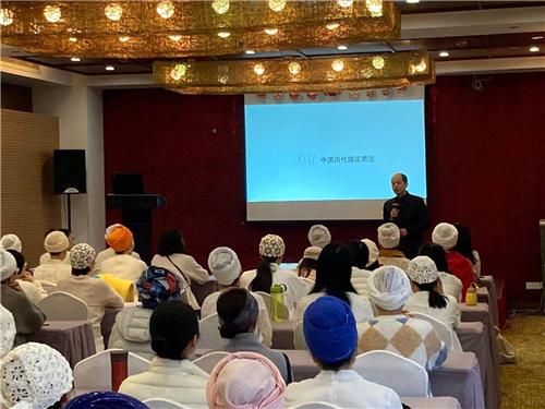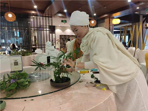 活动伊始,树山书香世家温泉度假酒店总经理,插花节总策划周总,引经据典,细致讲解了中国历代插花的演变历史,并利用各种新鲜花材,讲述了插花的种类和插花原则。插花和绘画、建筑、雕塑等等是相通的,插花中要注意黄金分割比例、色彩、主次关系、质感、韵律、平衡......还有花的护理方法。