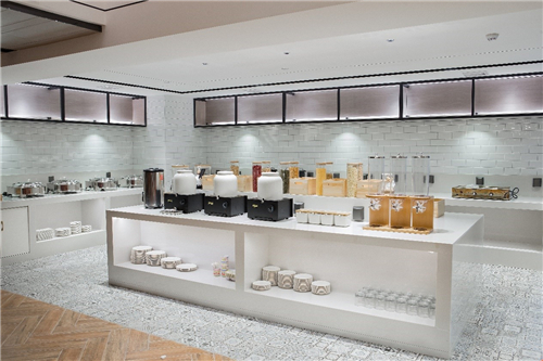 餐厅中采用了摩登风格吊灯和凸显坪效的瘦型桌椅,风格更加整齐。白色的U型布菲台和木色地板相得益彰,更显洁净。