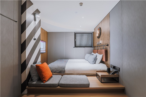 YUNIK HOTEL 客房选配高颜值色调撞色,轻工业风与孟菲斯设计理念相互碰撞,空间合理,色彩高级,风格简而不凡。