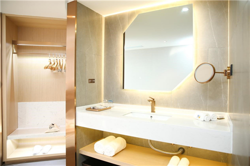 房内拥有语音客控系统,只需要将智能语音助手唤醒,即可享受不用动手,就能开关灯,开关窗帘,调节空调温度等,同时也可通过手机一键操控,十分便捷。另外,客房内还配置了优质床品和洗护用品,帮助客人消除一天的疲惫。干净简洁的客房,让客人如回家般舒适。