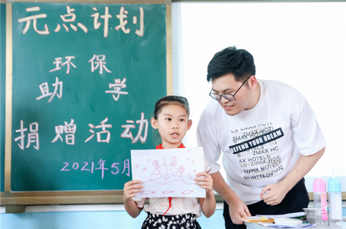 自 2019年 "元点计划"项目启动至今,ZMAX HOTELS和潮漫酒店已回收了 521kg 客房塑料垃圾并将它们再制成 7400个 文具盒累计帮助了 6500名 小元点。