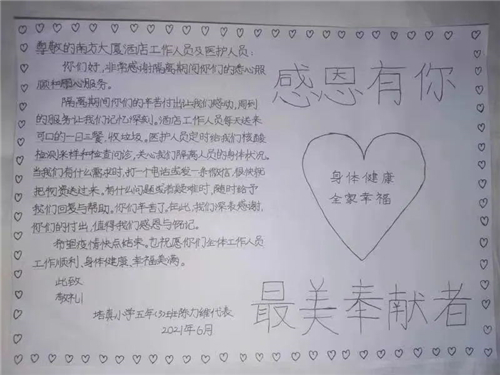 对于在酒店隔离的孩子们,叶燕平及南方大厦酒店服务团队在周边批发市场已经全部关门、小商店也不开门的情况下,他们冒雨跑了很多地方,给孩子们准备儿童节礼物,得到客人和定点酒店工作专班小组的一致称赞。