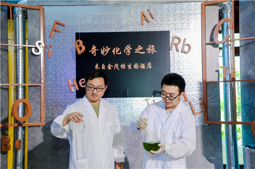 金茂酒店文化展则汇集了金茂旗下酒店的IP文化、地域文化、博物馆文化、科技文化和亲子主题文化等内容。有久负盛名的故宫主题下午茶,浓郁而独特的东巴文化体验,中国四大明绣之一的湘绣表演,科技之旅现场体验之化工魔法秀,以及水桶王国亲子主题餐厅展示,更有机器人提供现场服务,还有丰富的海南地域特色茶点……一步一景,遇见金茂。