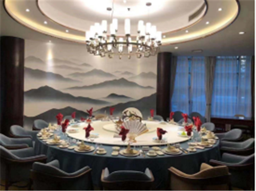 一楼宴会包间,可见一派苏式园林的景象。苏州园林被誉为“无声的诗,立体的画”,有着“江南园林甲天下、苏州园林甲江南”的美称。