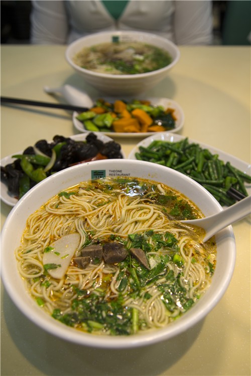 当地人把兰州拉面叫做兰州牛肉面,几乎兰州的大街小巷都能找到牛肉面的存在,牛肉面讲究现拉现做,“一清、二白、三绿、四红、五黄”,看起来非常有食欲。
