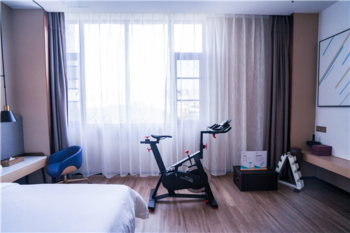 潮漫酒店一直以来,坚持以满足不同商旅客人需求为原则,倡导Colorful Living,出行不止一面,致力于打造适应现代快生活、充满品质感的住宿空间。差旅人经常性出差,不断变换在各个城市,酒店产品的设计就需要适应这种快节奏的生活。例如,客房标配的办公桌椅、在房健身的设计、自助打印、客房文具等等的设置,为商旅人描绘出了一个个惬意活力的生活小场景,随时随地放松紧绷的神经。