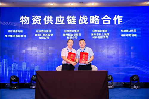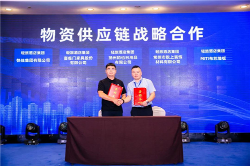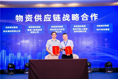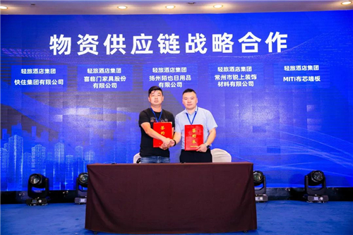 发布会上,轻旅酒店集团依次与深鹿联合基金和哲联融资联合基金举行签约仪式,与供应链伙伴签订战略合作协议。