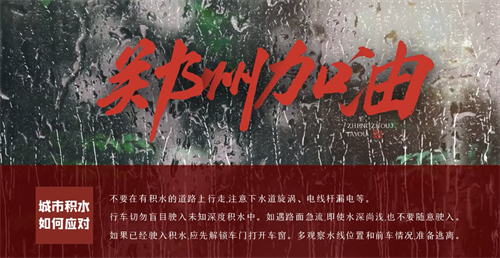 ➤目前,河南省暴雨突破历史极值,多地出现内涝、山洪等灾害,红色预警持续进行,锦江都城酒店品牌密切关注本次河南雨情和汛情动态做好积极应对、尽力保障宾客安全。
