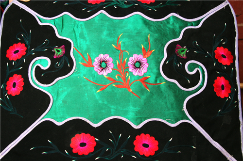 贵州各少数民族的刺绣都具有独特的风格,布依族的清秀、苗族的绚丽、水族的素雅、侗族的明快,其中苗族最具特色,图案多取材于自然景物,色彩丰富,针法精巧,美观大方,充满民族气息。挑花是根据底纹布上的经纬线设计图案的装饰艺术,多为几何图案,构图严谨,富于节奏。苗族挑花以工艺精致著称,在色彩、构图上更符合现代审美。