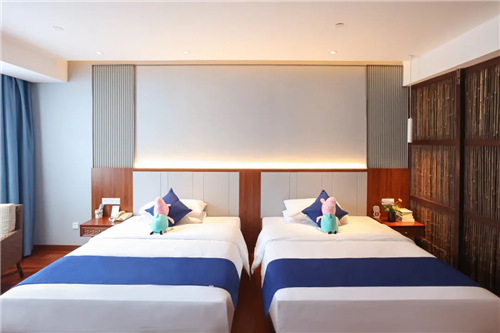较之先前的客房,重装的客房在视觉效果上较原先浓重的传统风,增加了一丝轻快,简单的插花作品搭配进空间,增加了整个房间的活力。同时,整个空间也显得更加宽敞,尤其是家庭亲子房,后续也将加入儿童系列用品,即使是小朋友自己玩,也不会感到无聊。