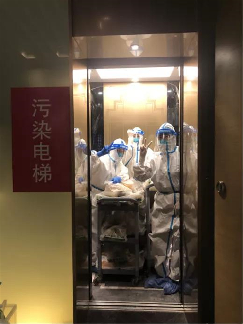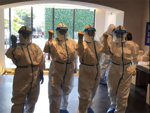 她们是酒店第一批接触隔离区的人员,她们严格按照步骤穿上隔离衣,这时你已看不清她是谁。她们虽然已被密闭的隔离服压抑的喘不过气,但她们身上原有的那股柔弱与善良却充满着刚强的力量,勇于上前。