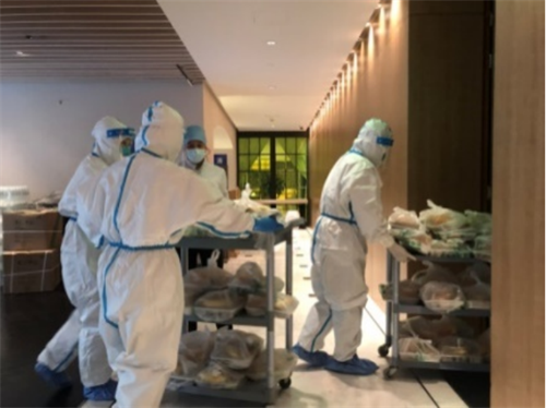 每一位人员每天测试体温,每一个角落消毒隔离,每一处明确区域解释。每一盒饭菜都是安全密封。