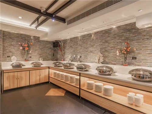 大堂简约清新,布局大气,近似自然优美的线条,打造度假与时尚结合的风格。木色背景墙配以彩色壁画,特色十足,灵动十足,帮助消除宾客的疲劳感。走廊地毯采用灰色和黄色的搭配组合,几何图案更是营造了一种愉悦轻松的氛围。大面积回归自然的原木材料搭配浓厚却饱满的色彩,用颜色的温度调和空间情绪,美观且大气。