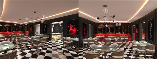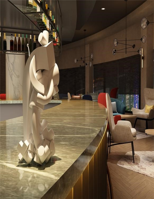 △大堂中心、旋转楼梯中心、餐厅、酒吧等公共区域空间均进行大型雕塑、版画、浮雕、艺术互动装置等设计