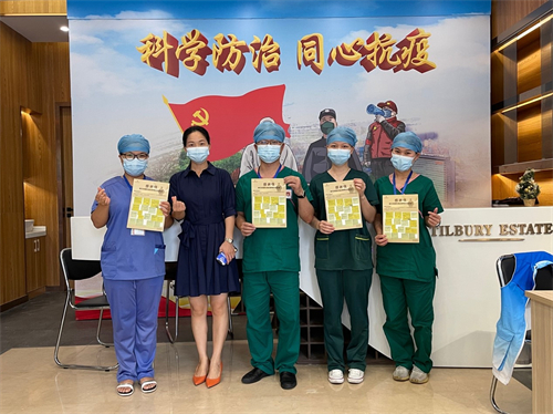 图为酒店代表为当日值班的医护人员送上感谢信(以上图片来源于维也纳国际酒店)