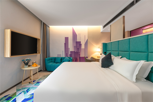 坤逸酒店为了打造新一代商旅客群的私享空间,旗下产品,坤逸•星光、坤逸•月光、坤逸•轻居产品融入大胆的彩色线条,房间里的开放设计、城市元素、以及轻工业风的设计元素,大胆的贴合当代年轻人无拘无束、随心的需求。其中,即将开业的坤逸•星光(会展中心店)中,不仅沿用坤逸·星光时尚、大胆、悦动的多彩设计,更搭配适合年轻人交友的娱乐大堂、户外餐吧等,让顾客在在旅途疲惫的停歇空间中,享受到更多自由、开放、时尚的同时,找到属于自己的舒适体验。