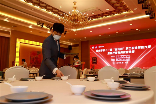 为进一步推动酒店高技能人才队伍建设,加快培养和选拔适应产业发展需要的专业技能人才,构建“培训、练兵、比武、晋级”四位一体技能晋升绿色通道,9月16日,第十一届“创元杯”职工职业技能大赛餐厅服务员技能比赛在苏州胥城大厦举行。来自苏州、无锡、镇江、盐城、宿迁、淮安、安徽、济南等地区17家酒店的37名餐饮服务员同台竞技,展示了书香餐饮服务的接待水平。