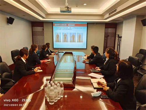 本次主要由各部门根据岗点需求培训职业站姿、队列队形、礼让客先行、微笑服务、鞠躬礼节及各种日常工作场景的言行举止。