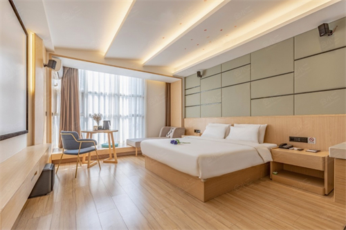 穿过幽静的过道,踩着柔软的地毯,进入舒适客房。房间整体宽敞明亮,阳光透过纱帘散落在柔软的沙发,让空间暖调十足。客房细节十足,采用途客中国酒店装修标准,配备舒适床品,极速Wi-Fi,独立卫浴,冷热空调,供旅客祛尘洗乏、娱乐休憩。