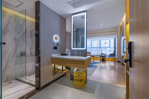 酒店设计现代雅致,大堂明亮宽敞;客房通透雅致,木质结构搭配温润大理石,营造一个简洁优雅的空间;客房布置舒适通透、色调淡雅。优质大床配以设计性地毯,处处体现在精致格调。床侧还有一隅休憩空间,阳光透着纱帘照入,静静躺在沙发上,品一杯茶或看一本书,感受岁月静好。